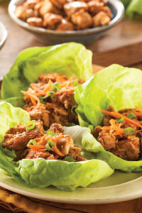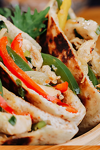 A wrapped sandwich filled with sautéed sautéed spicy chicken