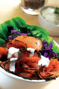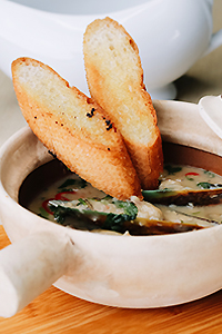 Steamed mussels with lemongrass with creamy roasted sesame dressing.