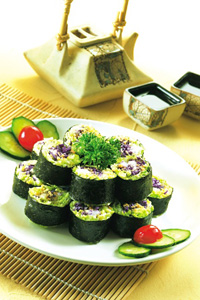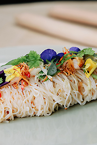 Wok-fried rice cake flavoured with blended chilli, onion, sauces, and chicken meat and smoked sesame mayonnaise.