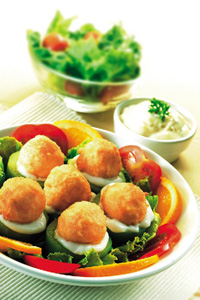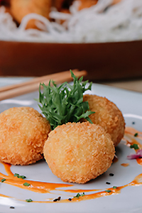 Pulut Kuning Rice Balls fried in batter and serve with Thousand Island